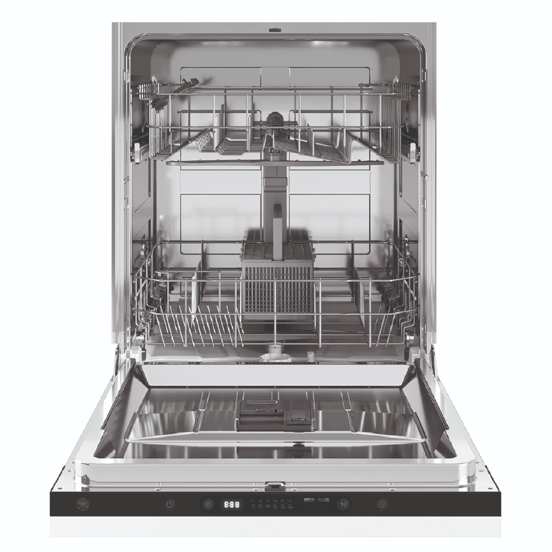 Questa lavastoviglie da incasso Bertazzoni da 60 cm è abbastanza larga da contenere 12 coperti in due cestelli. Il motore è dotato di un sensore di carico che regola automaticamente il consumo d’acqua e la durata del ciclo in base alla quantità di stoviglie, garantendo prestazioni efficienti e su misura. I comandi touch con display a LED ti consentono di scegliere tra 6 programmi con 2 funzioni. I sei punti di fissaggio, due su ciascun lato e due sulla parte superiore, assicurano un’installazione stabile e precisa. Classe energetica E.
